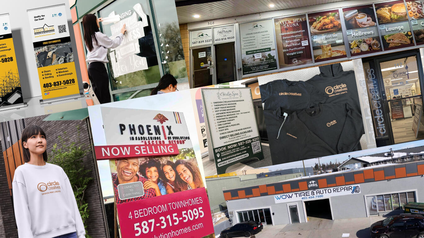 We are Circle Creatives, a local print and sign shop in Calgary specializing in graphic design, printing, and signage. We help businesses transform their storefront signage, and print and digital marketing materials through collaboration, thoughtful, and well-crafted work.